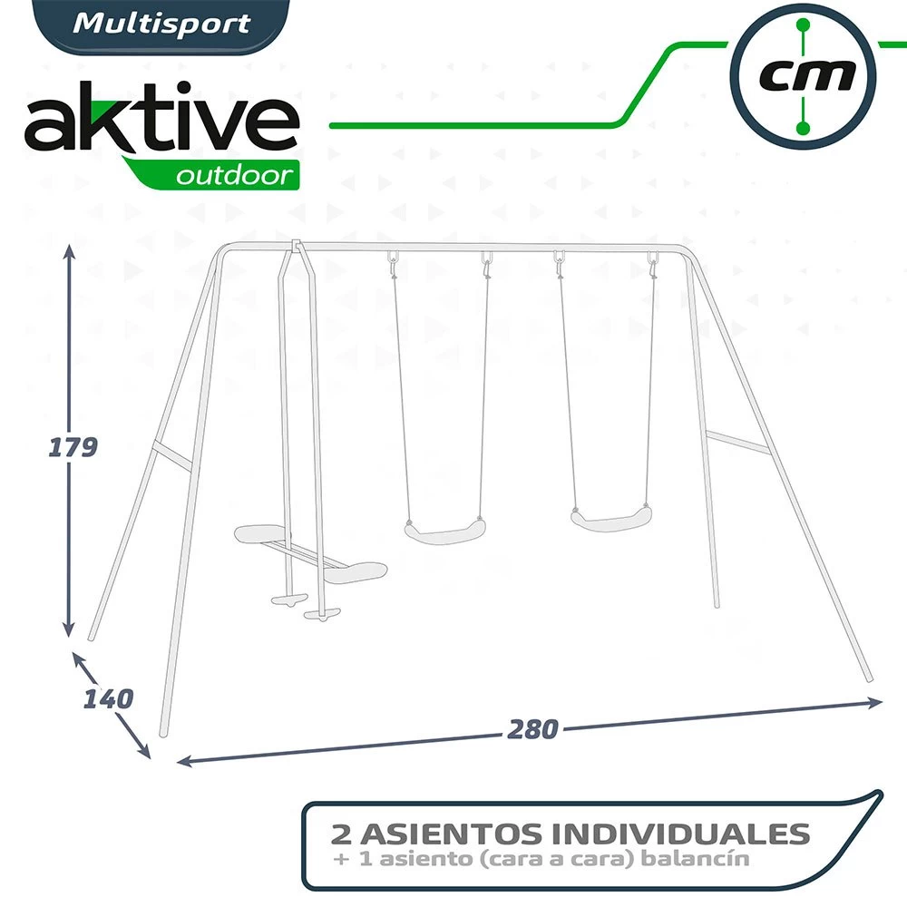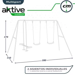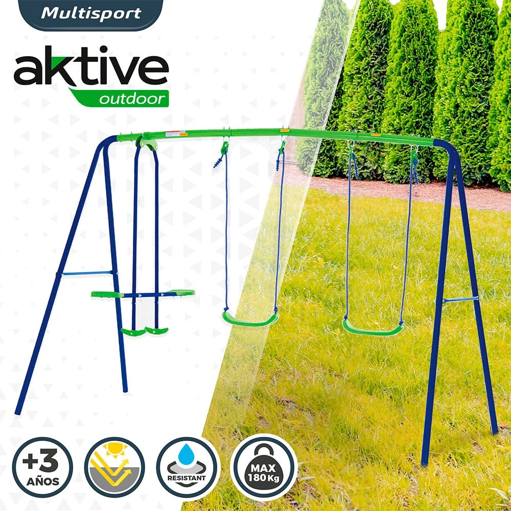 Columpio Aktive Sports con 2 asientos y 1 balancín, recomendado para 4 niños que no excedan de 180 kg en total.