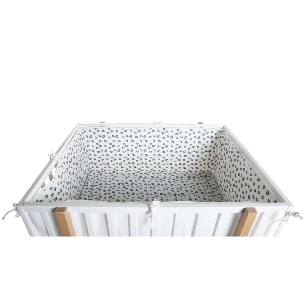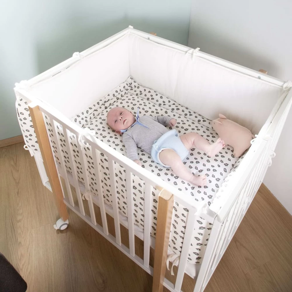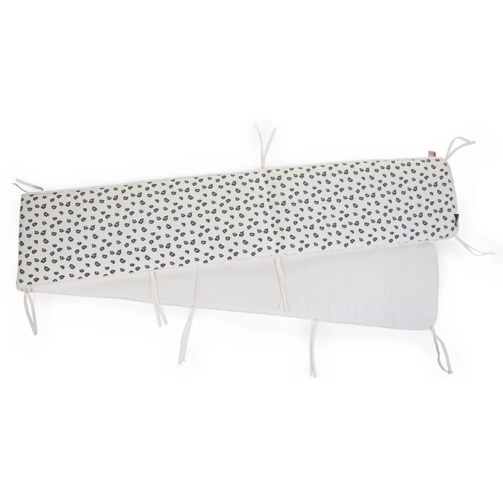 El protector ultrasuave para el parque de CHILDHOME protege a tu pequeño contra los lados duros del parque. Su hermoso diseño le da al parque un toque instantáneo gracias a la combinación de estampado de leopardo y blanco clásico. Esta almohadilla de seguridad para el lado del parque se puede usar en 2 lados y se puede unir fácilmente a los listones con las correas en el lateral. Color: Blanco con estampado de leopardo Material: 100% jersey de algodón y 100% poliéster polystar Dimensiones totales: 340 x 35 x 2 cm (largo x alto x grosor) Protección de parque infantil reversible ultrasuave Fácil de sujetar a los listones de la cama con las correas laterales Lavado a máquina a 30ºC No usar secadora No lavar en seco No usa lejía