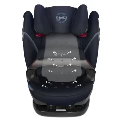 El escudo de impacto optimizado del Pallas S Fix reduce el riesgo de lesiones graves en el cuello sin limitar al niño y tiene un rendimiento general mejorado en caso de choque. El ajuste con una mano del escudo de impacto garantiza la facilidad de uso para los padres. La fuerza de una colisión frontal se distribuye sobre el escudo de impacto y es absorbida por sus materiales absorbentes de impacto. Este sistema se asemeja a una bolsa de aire inflada y ayuda a reducir significativamente la fuerza del impacto en caso de accidente. El arnés no daña al niño, mientras que al mismo tiempo la cabeza sensible, los hombros y los órganos internos están protegidos. El nuevo escudo de impacto ajustable con una mano (pendiente de patente) se ajusta para brindar la máxima comodidad perfectamente al cuerpo del niño y, además, ofrece más libertad de movimiento de la parte superior del cuerpo, así como la máxima seguridad, especialmente en impactos frontales en comparación con los cinco puntos convencionales. sistemas de arneses.