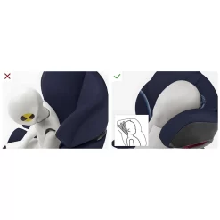 El reposacabezas reclinable evita que la cabeza del niño se incline hacia adelante mientras duerme. Asegura que la cabeza del niño permanezca en la zona de seguridad en todo momento, lo cual es especialmente importante en caso de una colisión de impacto lateral.