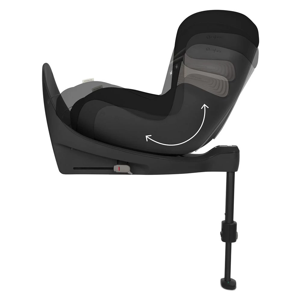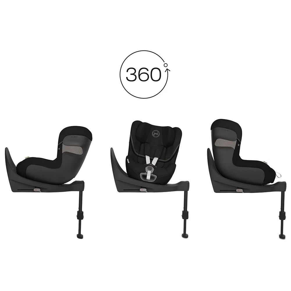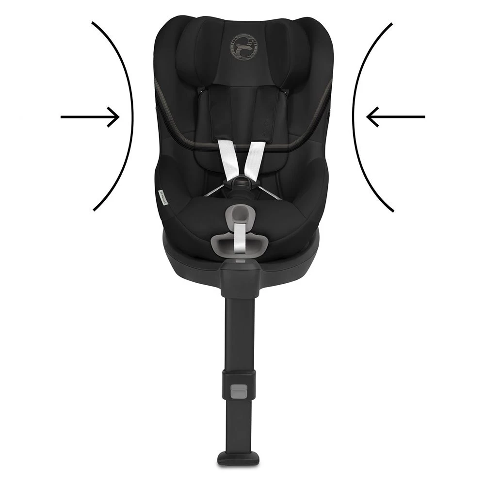 La silla de coche Sirona S2 i-Size cuenta con un ingenioso mecanismo de rotación de 360° con una sola mano para una entrada y salida rápidas.