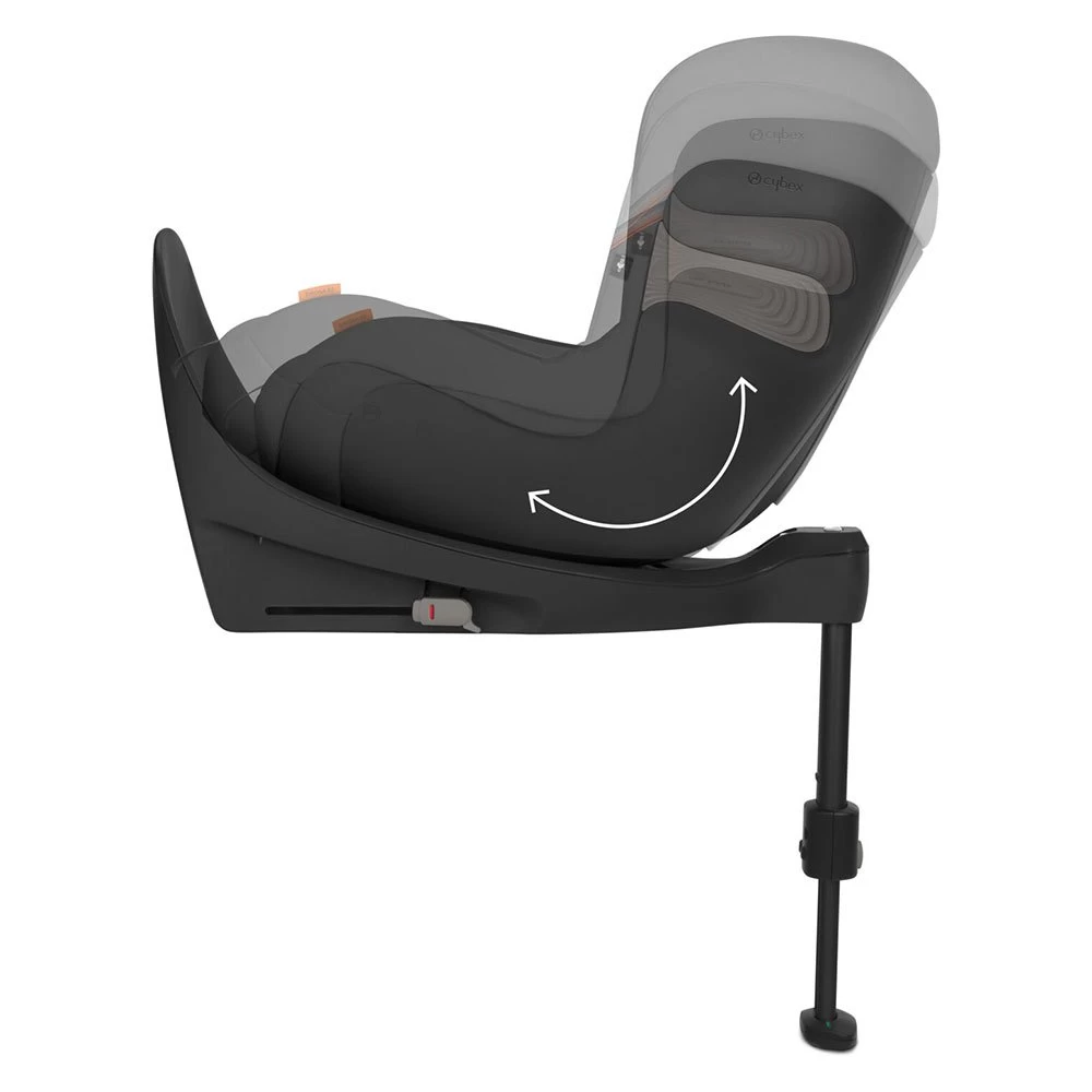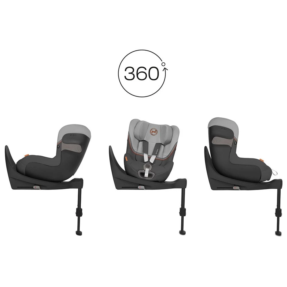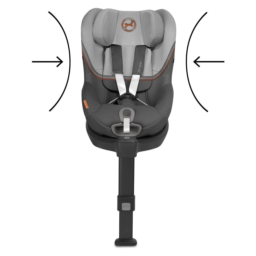 La silla de coche Sirona S2 i-Size cuenta con un ingenioso mecanismo de rotación de 360° con una sola mano para una entrada y salida rápidas.