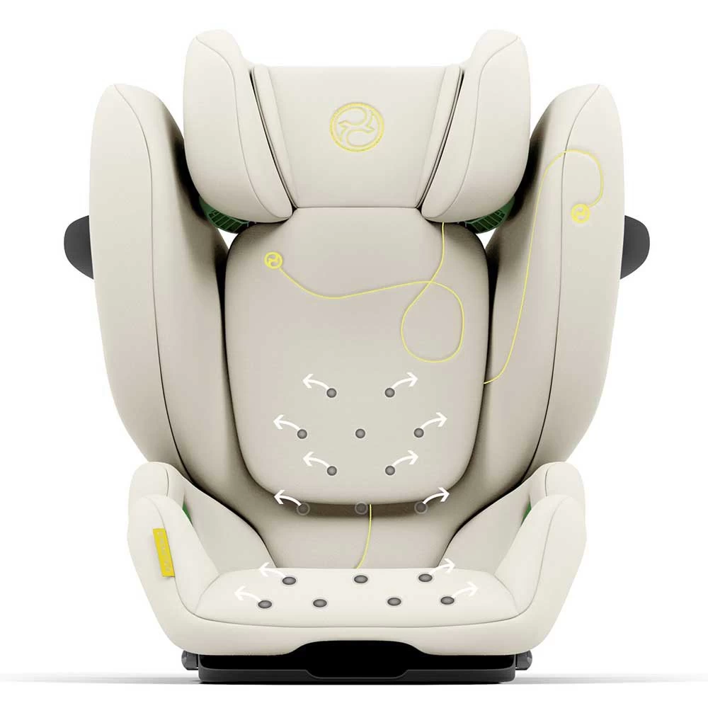 – El sistema de ventilación de aire mantiene fresco a su hijo. El aire de refrigeración fluye a través del asiento del automóvil: se lleva el calor, baja la temperatura del asiento y mantiene a su hijo cómodo y feliz.