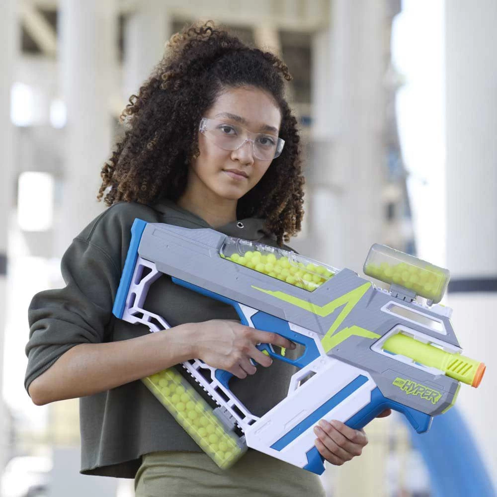 Se el más rapido con el blaster automático Nerf Hyper Mach-100 con capacidad de hasta 100 recargas.
