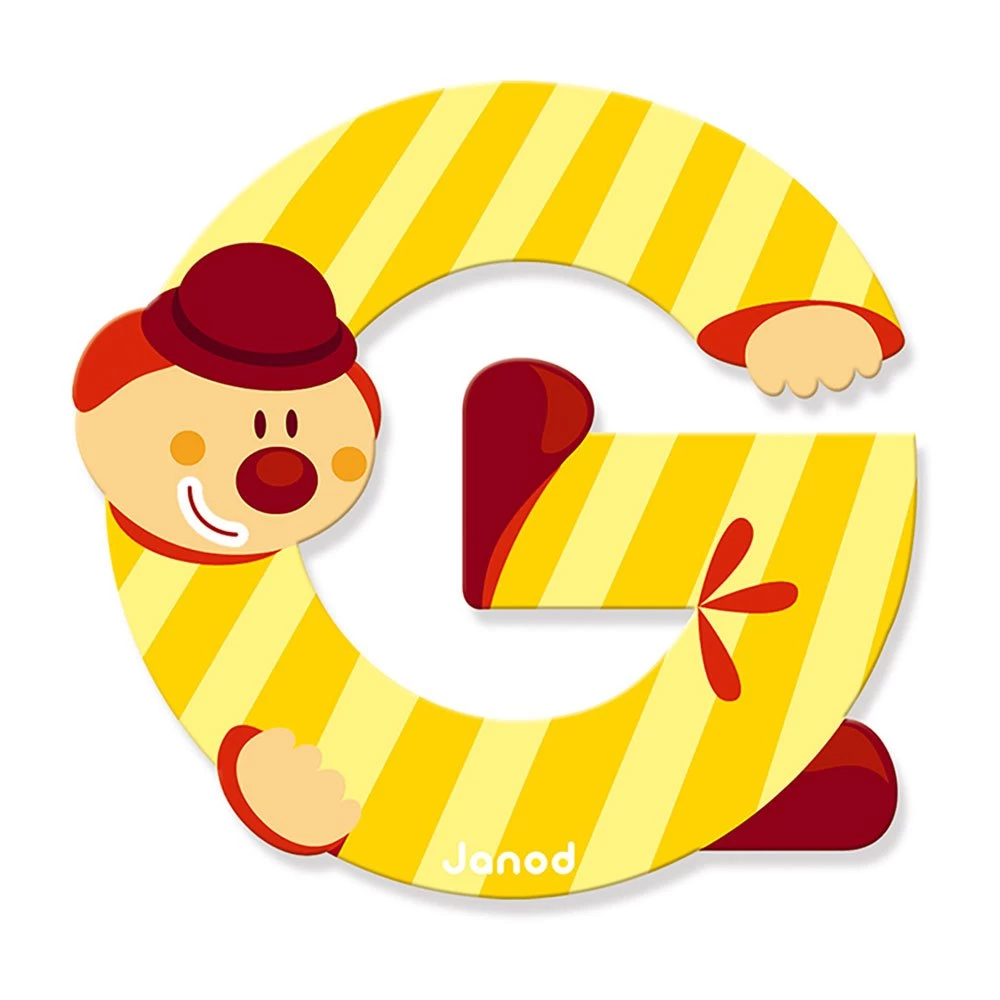 Letras de madera serie Payaso en novedosos colores más llamativos.