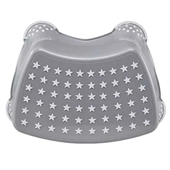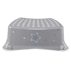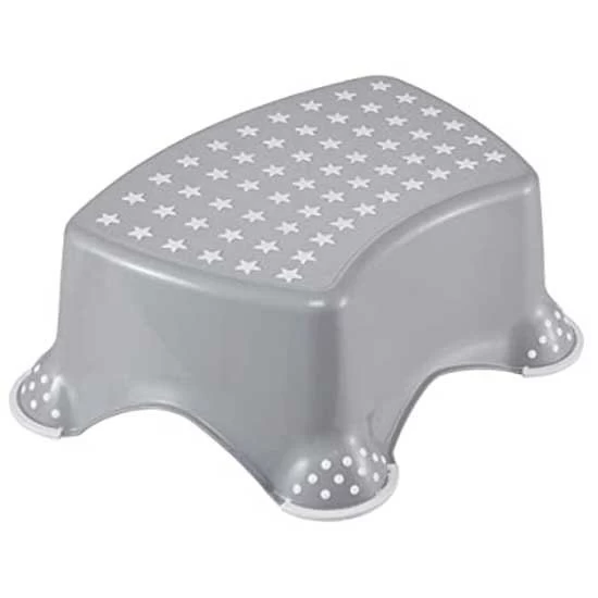 Taburete escalón de un nivel de Stars para niños entre 18 meses y 10 años, Para alzarse y sentarse con seguridad – Ideal para alcanzar el lavabo o el váterSeguridad infantil:Ni se vuelca ni se resbala gracias a las patas de goma antideslizantes, Superficie estable y segura gracias a las gomas antideslizantesImpresión de calidad del diseño Stars, A juego con otros productos de la colección Stars de keeeper, Fácil de limpiar:Lavar con una esponja o paño húmedoFabricado en Europa, Plástico (PP/TPE) robusto y de alta calidad, Sin BPA ni plastificantes, Sin emisión de sustancias nocivas, Resiste hasta 80 kg, Fácil de transportar gracias a su liviano pesoContenido 1 Taburete Escalón Diseño Stars, Dimensiones (LxAnxAl):40,5 x 28,5 x 14 cm, Escalón:32 x 20 x 14 cm, Peso:514 g, Color:Gris.