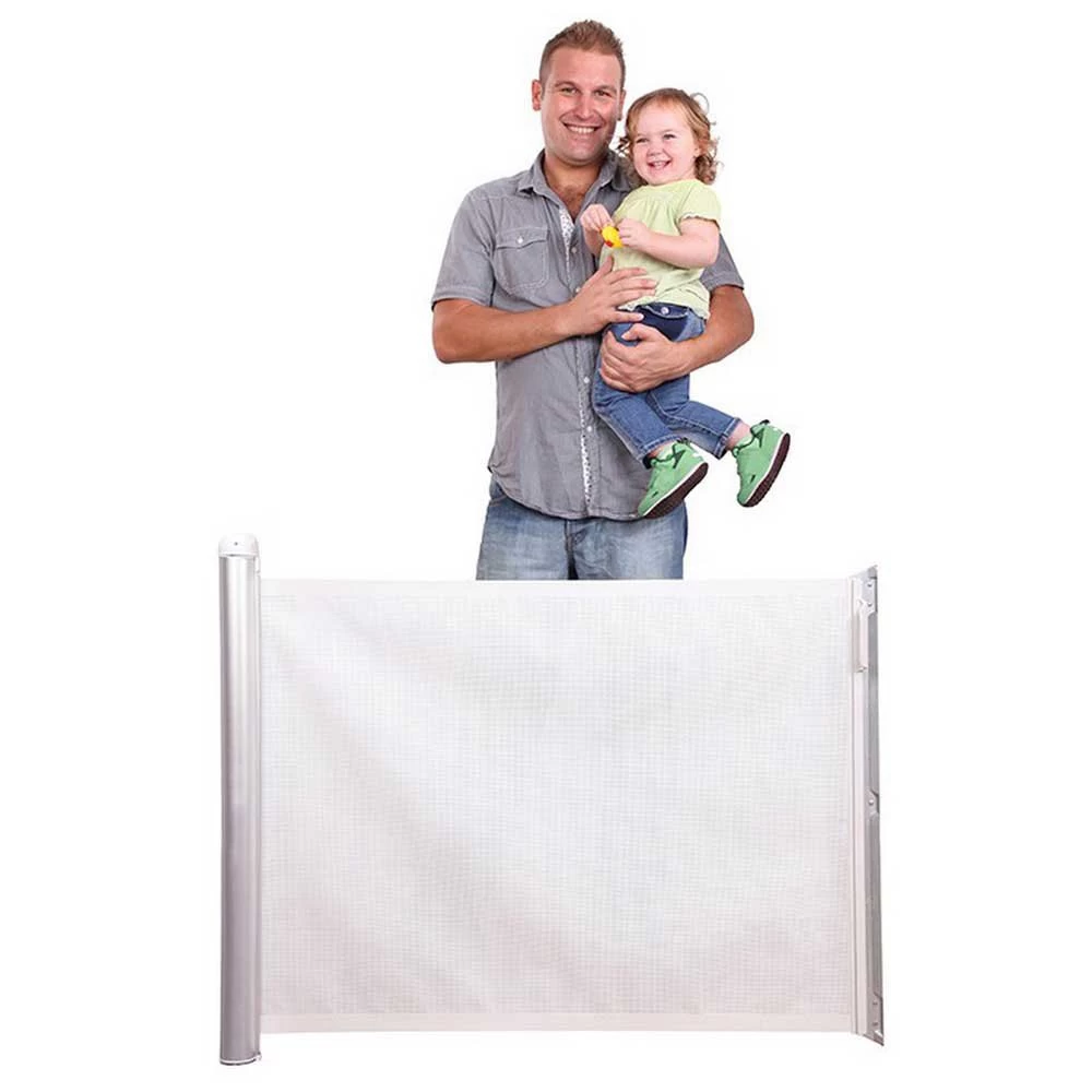 Discreto, totalmente seguro e innovador, KiddyGuard® le ofrece una alternativa elegante a otras puertas para niños. La malla blanca o negra se desliza maravillosamente en una carcasa de aluminio cepillado.