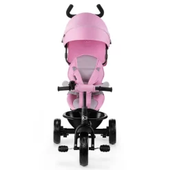 ¡El triciclo rosa de la marca Kinderkraft modelo ASTON tiene tres ruedas y características que le permitirán controlar el paseo o caminar en cada etapa del crecimiento de tu hijo! ¡Y así podéis divertiros paseando juntos! Gracias a la capota con ventana realizada en material transparente, podrás observar al niño sin tener que parar durante el paseo. La correa del asiento de 5 puntos y una correa adicional entre las piernas mantienen al niño en una posición cómoda y lo protegen de caerse del cochecito. Una barrera con correa es una protección adicional. Puede retirarlo cuando el niño ya no lo necesite. ¡Ajusta la altura del asa y la posición del asiento, despliega los cómodos reposapiés o desbloquea el accionamiento de los pedales y observa el progreso del niño! Color: Rosa Material de la estructura: Acero Material: Trenzado de poliéster y goma EVA Dimensiones: 50 x 92 x 115 cm (ancho x profundo x alto) Diámetro de la rueda: 24,5 cm/20 cm (delantera/trasero) Asa regulable en altura: Entre 103,5 y 108,5 cm Grandes ruedas de goma EVA, resistente al desgaste y a los pinchazos Posiciones orientadas hacia adelante y trasero atrás posibles (2 posiciones de asiento) Con frenos en las ruedas traseras Cinturón de seguridad de 5 puntos Capota grande y plegable Puede ser controlado por el padre o conducido por el niño Además, función de rueda libre (permite a su hijo pedalear sin impulsar el triciclo) Asa ajustable y cómoda para los padres Reposapiés plegable Fácil montaje Edad recomendada: De 9 meses a 5 años La entrega incluye : 1 x Bolsa pequeña 1 x Cesta grande 1 x Posavasos 1 x Campana
