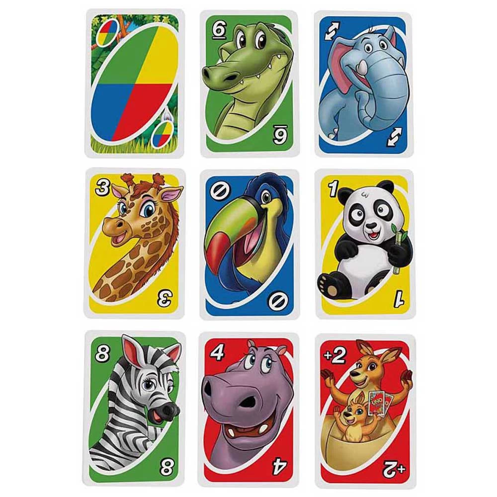 Los jugadores corren para deshacerse de todas sus cartas combinándolas con la carta que se muestra en la parte superior de la baraja, ya sea por color o por animal / número.