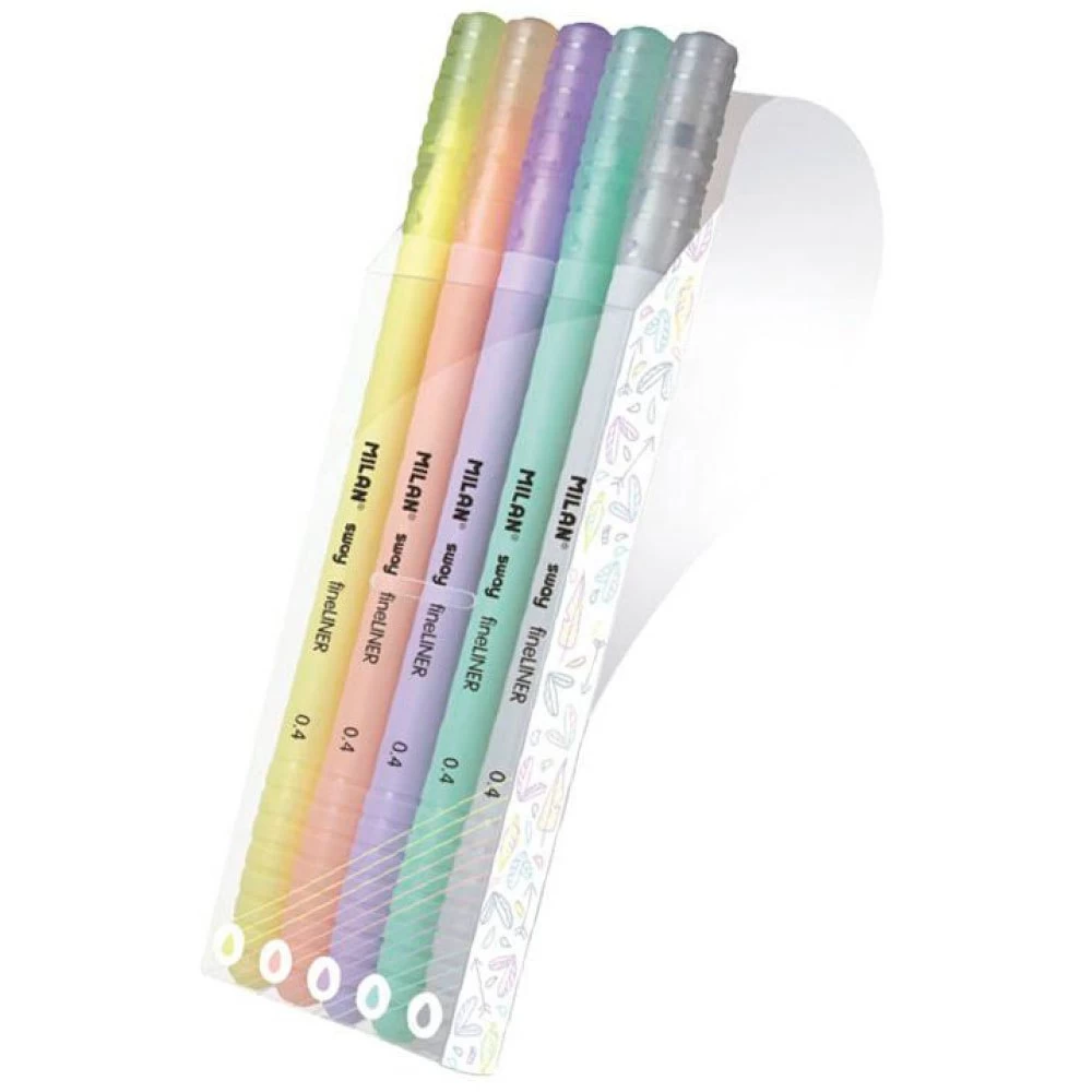 Estuche flexible que contiene 5 rotuladores punta fina fineliner 0,4 mm edición Pastel.