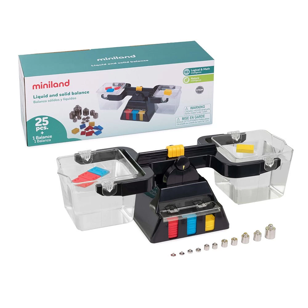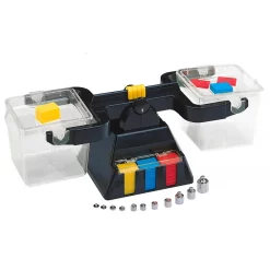 Con cubos y tapas, 14 pesas de plástico y 11 pesas de metal. Preciso. Apoya las nociones de peso y equivalencia.