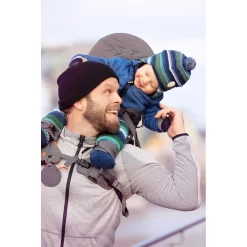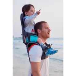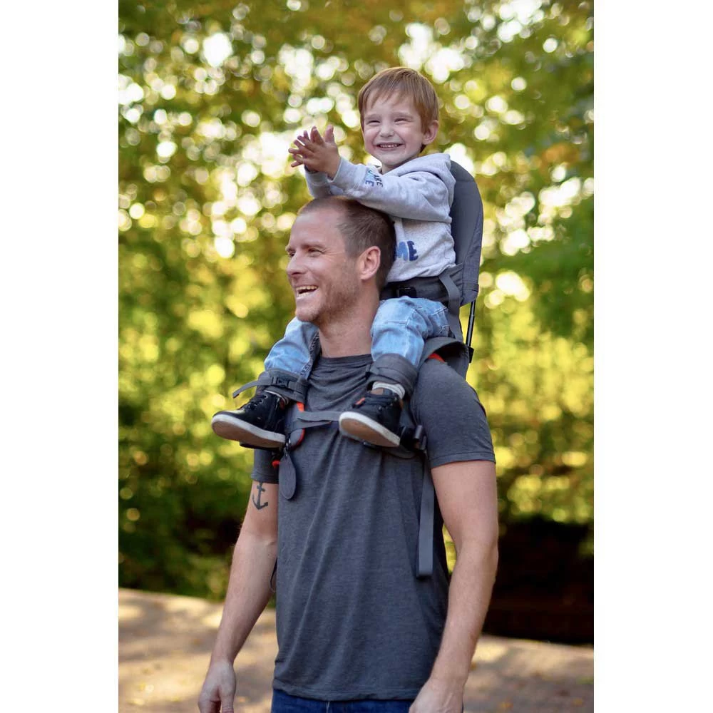– Mientras descubre el mundo, su hijo se sienta de forma segura sobre sus hombros asegurado por un cinturón y correas para las piernas. Se incluye un arnés con correas para los hombros para brindar apoyo adicional a la parte superior del cuerpo para los niños más pequeños (6 a 10 meses). Un asiento acolchado extensible proporciona la máxima comodidad para el niño. El respaldo de apoyo está diseñado para ayudar al niño a sentarse derecho mientras está sentado en el portabebés sobre sus hombros.