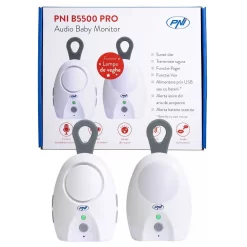 Audio Baby Monitor PNI B5500 PRO inalámbrico, intercomunicador, con lámpara de noche, función Vox y Pager, sensibilidad de micrófono ajustable.