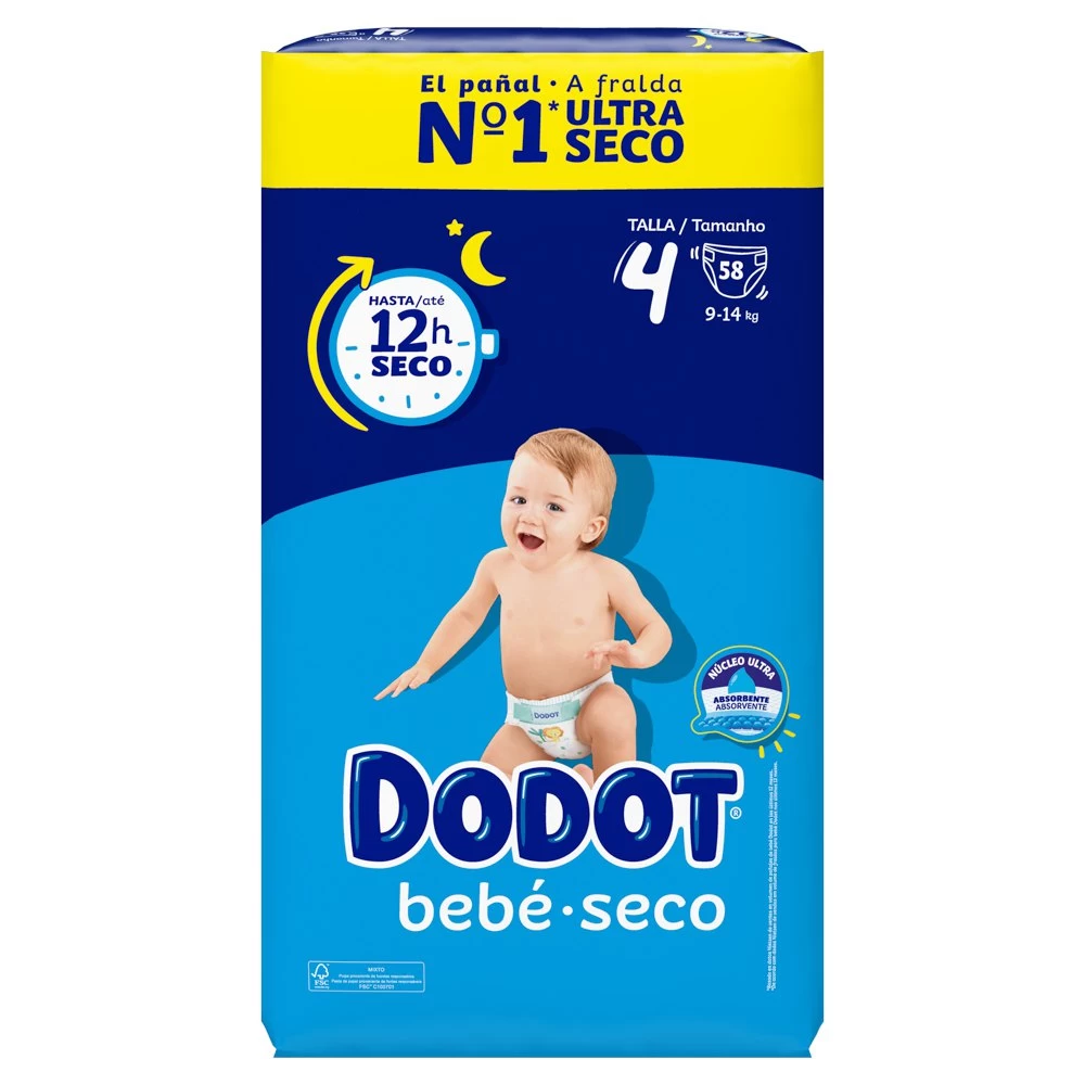 -Pañales Dodot Bebé Seco que garantizan hasta 12 horas seco.