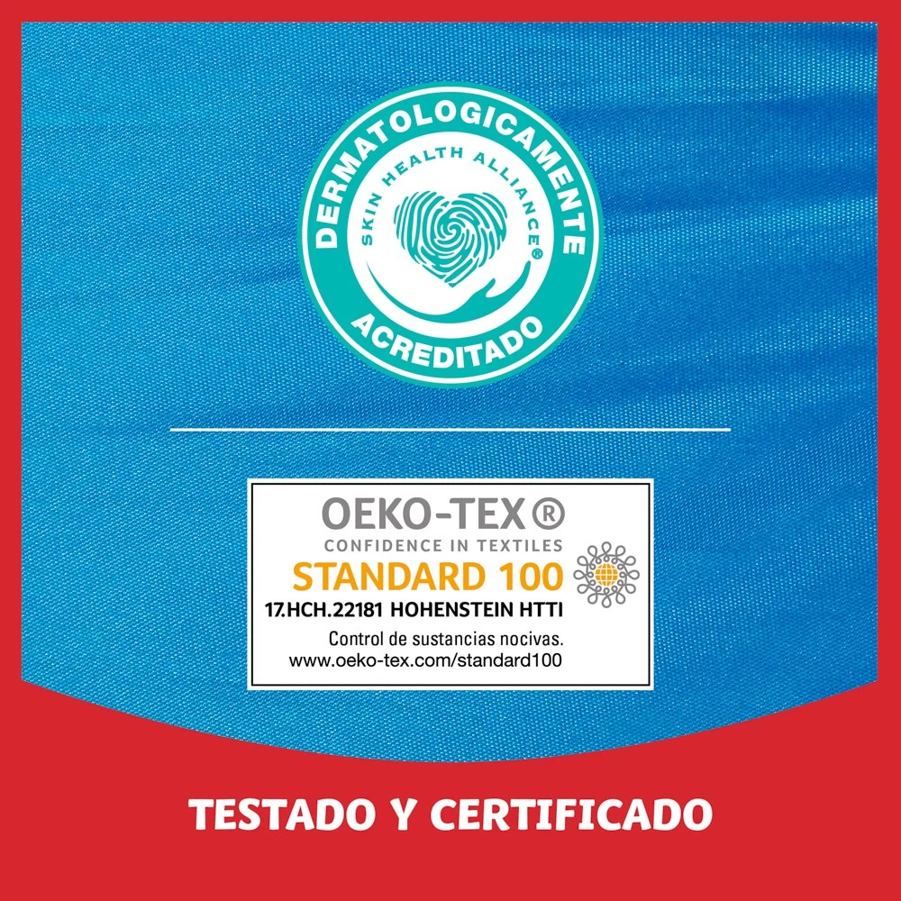 -Testado y certificado por el Standard 100 de Oekotex.