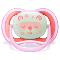 Un chupete ligero y transpirable para pieles sensibles Fácil de encontrar en la oscuridad. Calme a su bebé con un chupete que deja respirar la piel y es fácil de encontrar por la noche. ultra air night tiene orificios de aire extra grandes para mantener la piel sensible suave y seca, y un botón que brilla en la oscuridad para que puedas verlo mientras las luces están apagadas