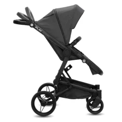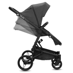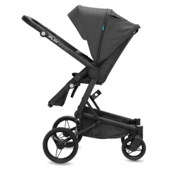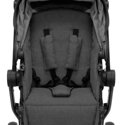 Equipada con manillar regulable en altura, capota extensible con ventana de vigilancia, amplia cesta portaobjetos y ruedas grandes con suspensión individual.