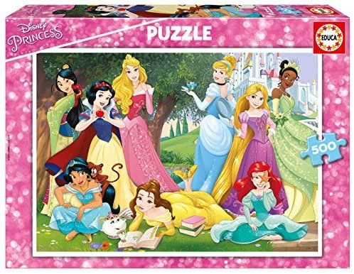 Princesas Disney Puzzle de 500 piezas que representa una imagen colorida de las Princesas Disney posando para el puzzle.