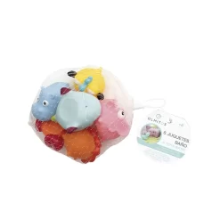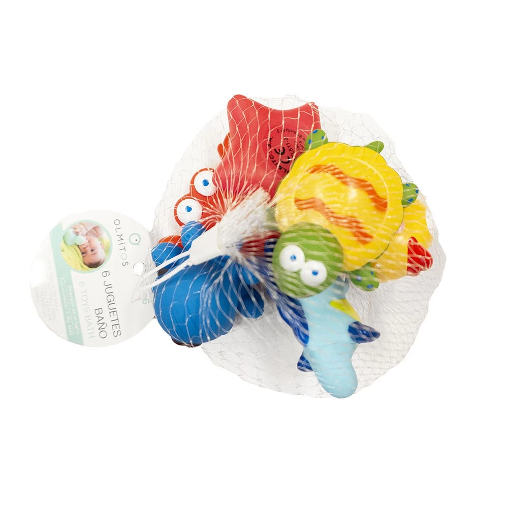 Red con juguetes de baño que aseguran la diversión en el baño.