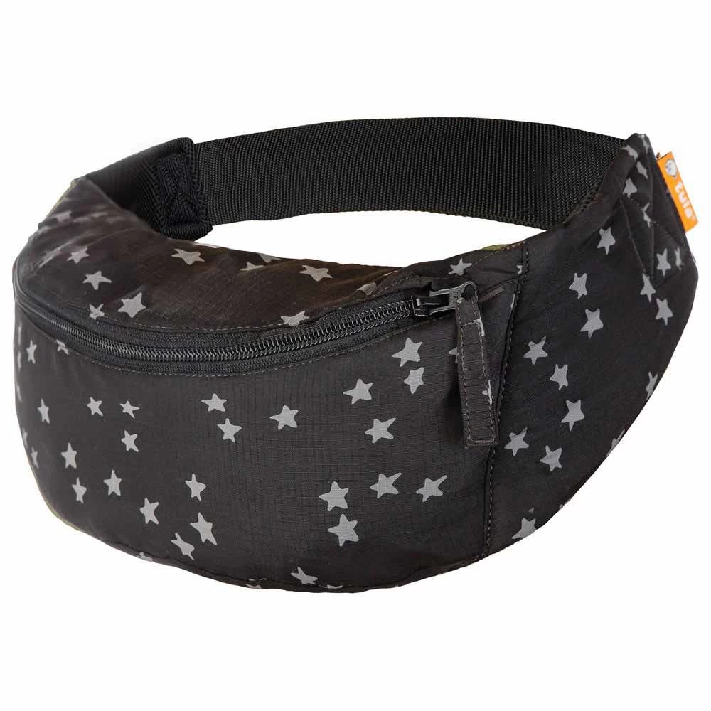 La espaciosa riñonera del portabebés Tula Lite, aún accesible cuando el portabebé está guardado, brinda una mayor comodidad mientras viaja ligero con su bebé a cuestas.