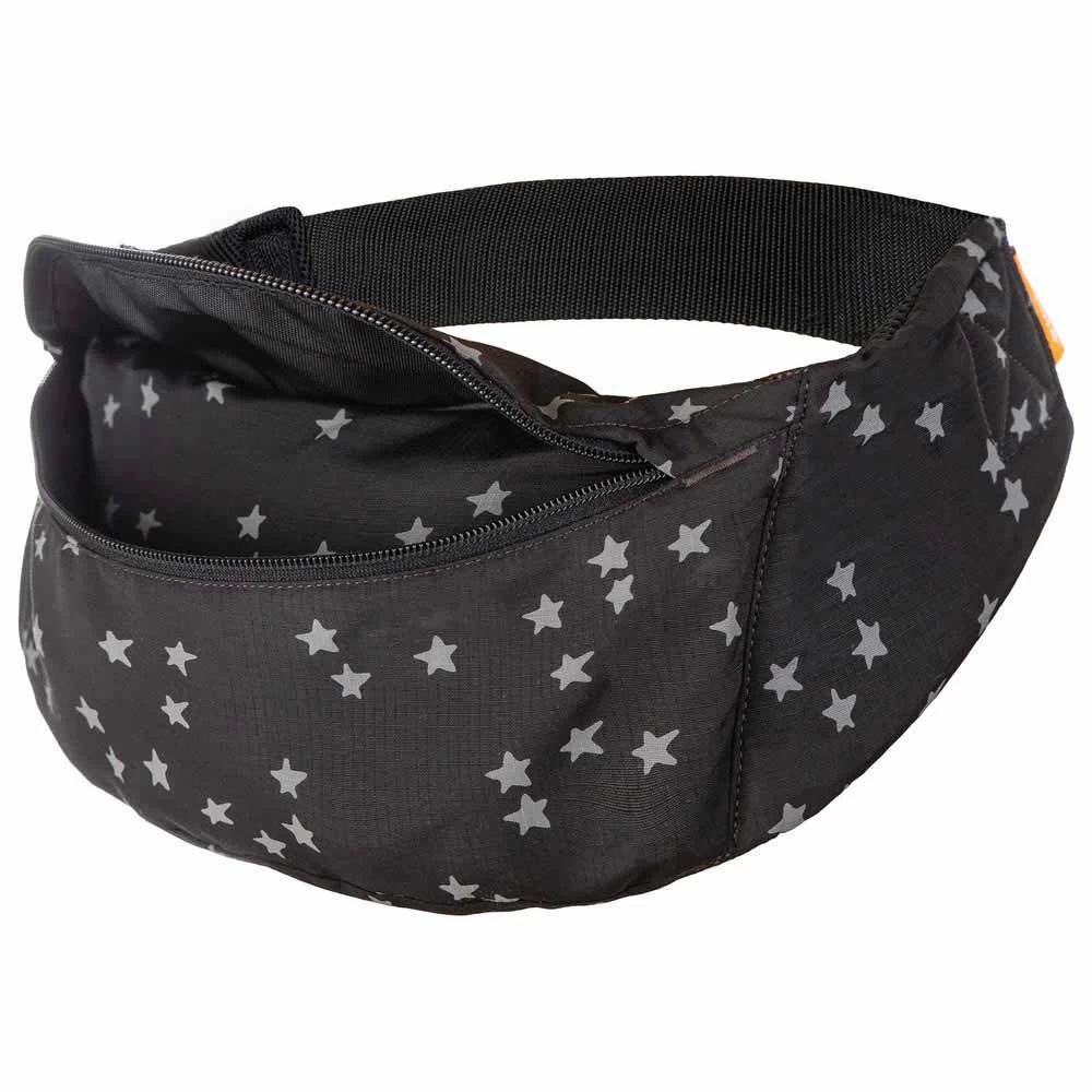 Y lleve sus herramientas de supervivencia diarias en la espaciosa bolsa para la cadera que todavía está accesible cuando se guarda el panel Tula Lite.