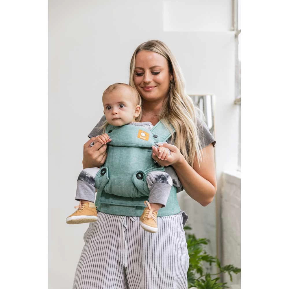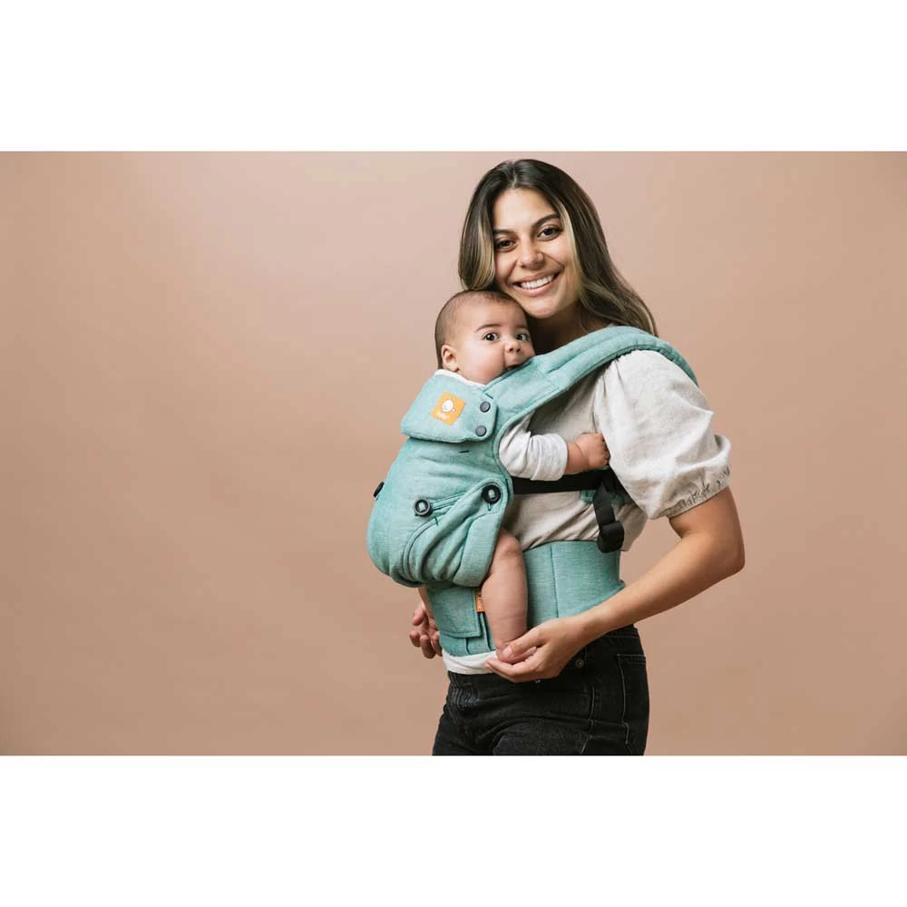 Múltiples posiciones para llevar al bebé, incluido el frente hacia afuera *, hacia adentro y hacia atrás. Cada posición proporciona una posición ergonómica natural que es la mejor para un transporte cómodo que promueve el desarrollo saludable de la cadera y la columna del bebé. ´´Reef´´, un paseo suave y relajante en nuestra nueva mezcla de lino y algodón mantendrá a su pequeño seguro y cómodo de la cabeza a los pies. Los tonos verdes apagados coordinarán con cada atuendo, en un color neutro para cada familia.