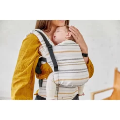 Nuestra hermosa colección de cáñamo resalta con color en nuestro portabebés de ágata a rayas. Como una piedra del desierto, cremas, grises, beige y grises se unen en nuestros portabebés Explore y Free to Grow.