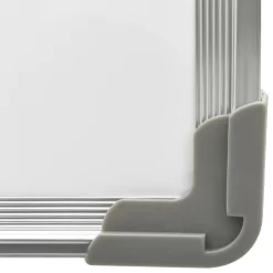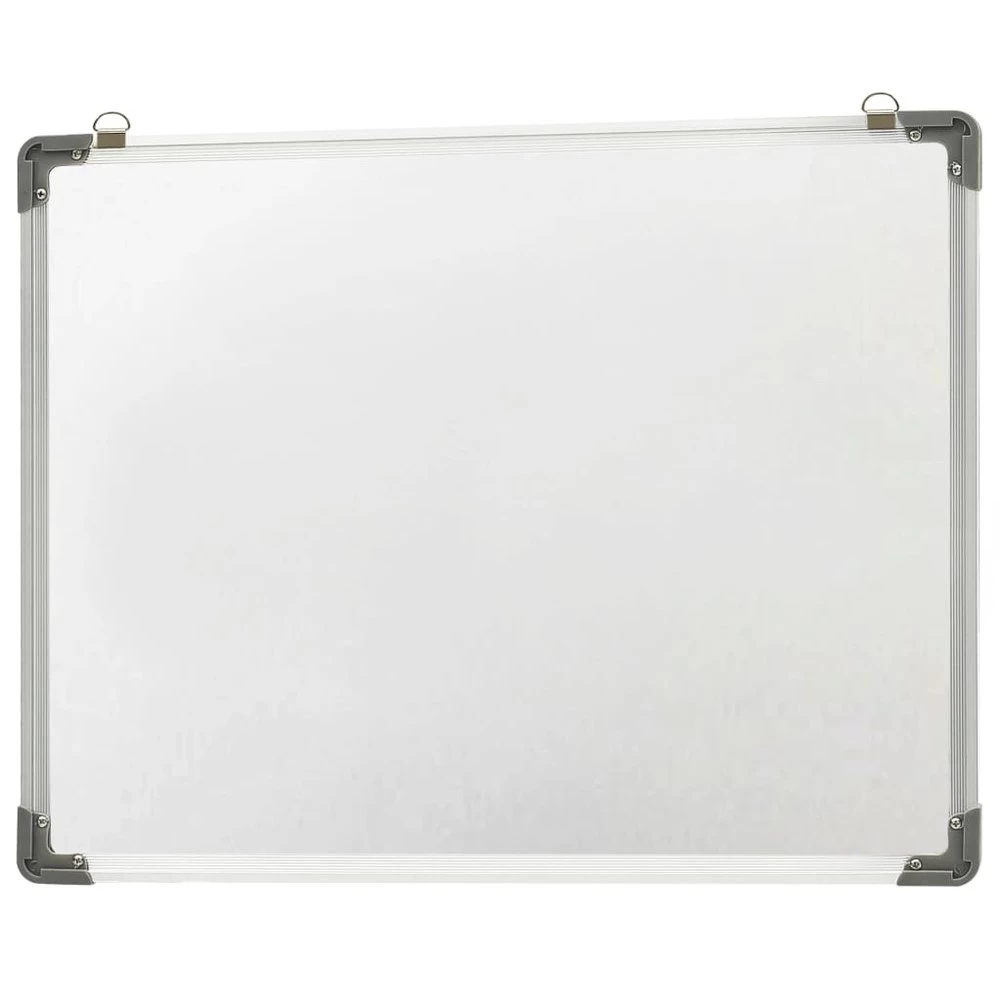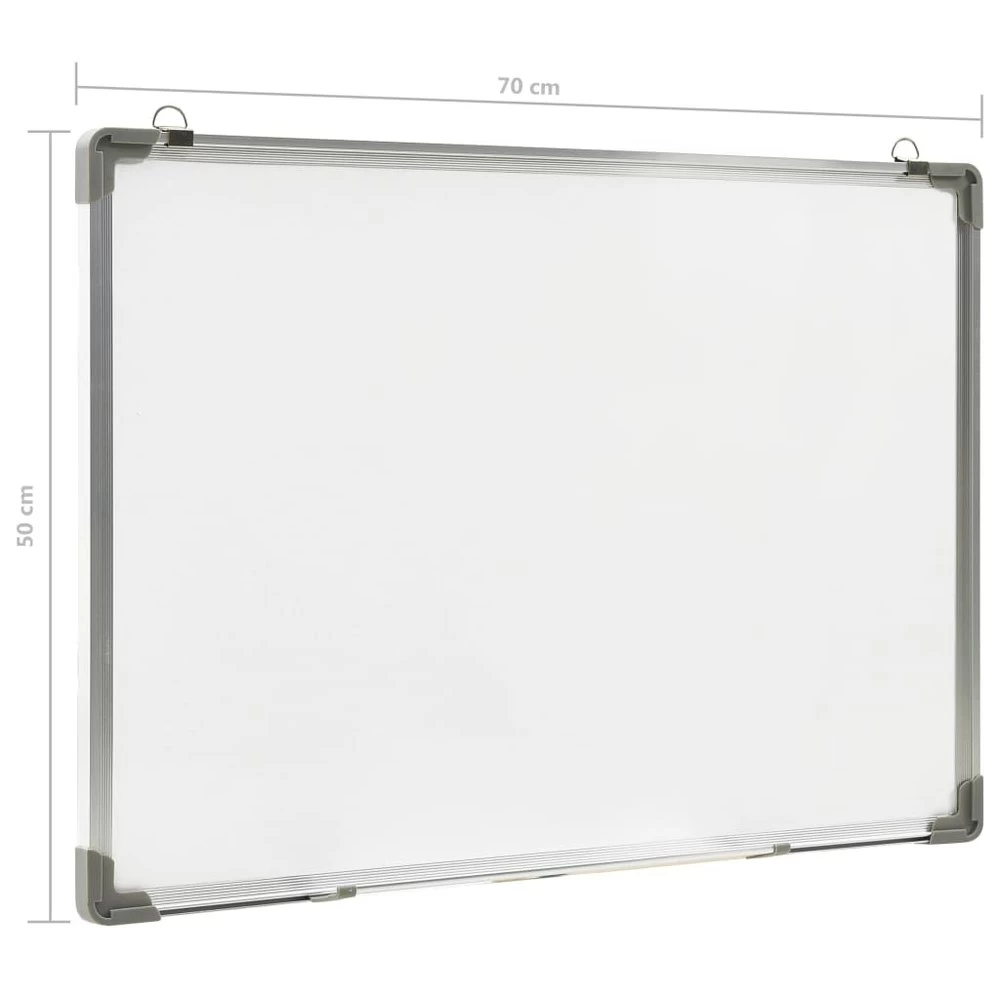 Nuestra pizarra magnética de pared es una solución ideal para crear un lugar central en tu casa u oficina en el que escribir notas, garabatear o colocar fotos. La pizarra blanca posee una superficie de acero lacado, en la que es fácil escribir y que es fácil de limpiar con el rotulador y borrador incluidos. La estructura de aluminio y el protector de esquina la hacen robusta y duradera. Puedes colgar el artículo con los imanes incluidos. Se incluyen ganchos y clavos para facilitar el montaje en la pared. Color: Blanco Material: Acero, aglomerado apanalado, aluminio, PP Dimensiones: 70 x 50 cm (largo x ancho) Fácil de montar en una pared Materiales de montaje incluidos La entrega incluye: 1 x Pizarra blanca 1 x Borrador de goma EVA 1 x Rotulador 5 x Imanes 2 x Clavos 2 x Tornillos de fijación